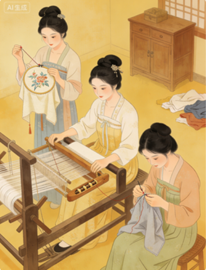 农家女子:织布换布、刺绣做手帕,拿到集市上换零钱贴补家用,但所有收入必须交由家中男性掌管,自己无任何财产支配权;哪怕是贵族女子,无需为生计操劳,女红也是必修课,是婚嫁时的 “重要嫁妆”,决定着婚后在婆家的地位。