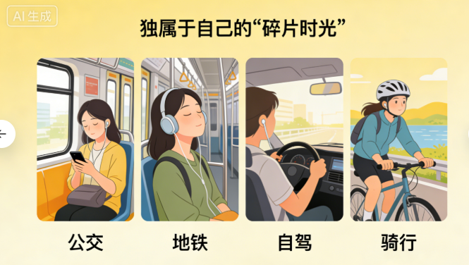 出门上班,通勤方式多样(公交、地铁、自驾、骑行),这是独属于自己的 “碎片时光”:可听书、学英语、刷资讯、听音乐,也可单纯放空,无需向任何人报备行程,出行自由、思想自由。