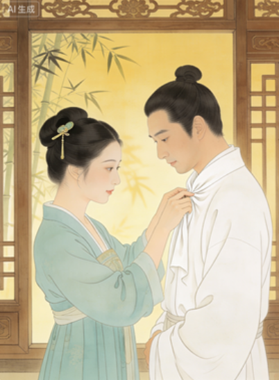 相夫:关注丈夫的起居和外出事宜,为丈夫整理行装、准备茶点,丈夫归家后,需柔声细语问询,不可过问丈夫的朝堂 / 生意之事,更不可发表自己的观点。